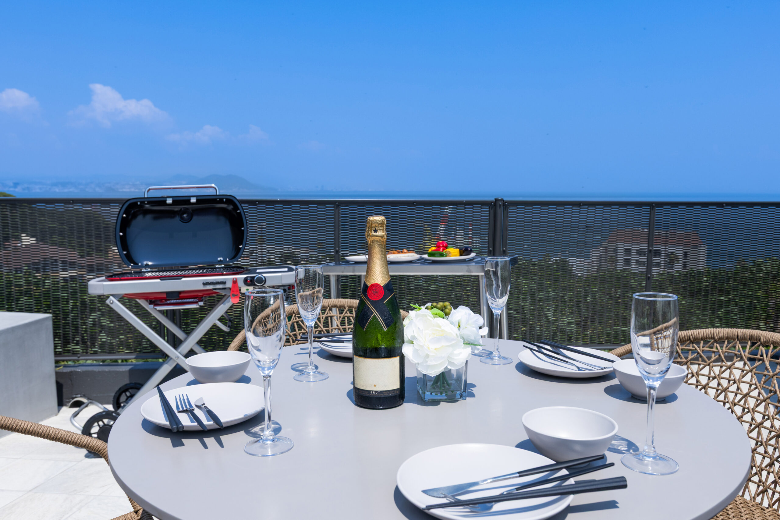 開放感あふれるリビングで語らい、BBQテラスでは潮風を感じながら特別な時間を。