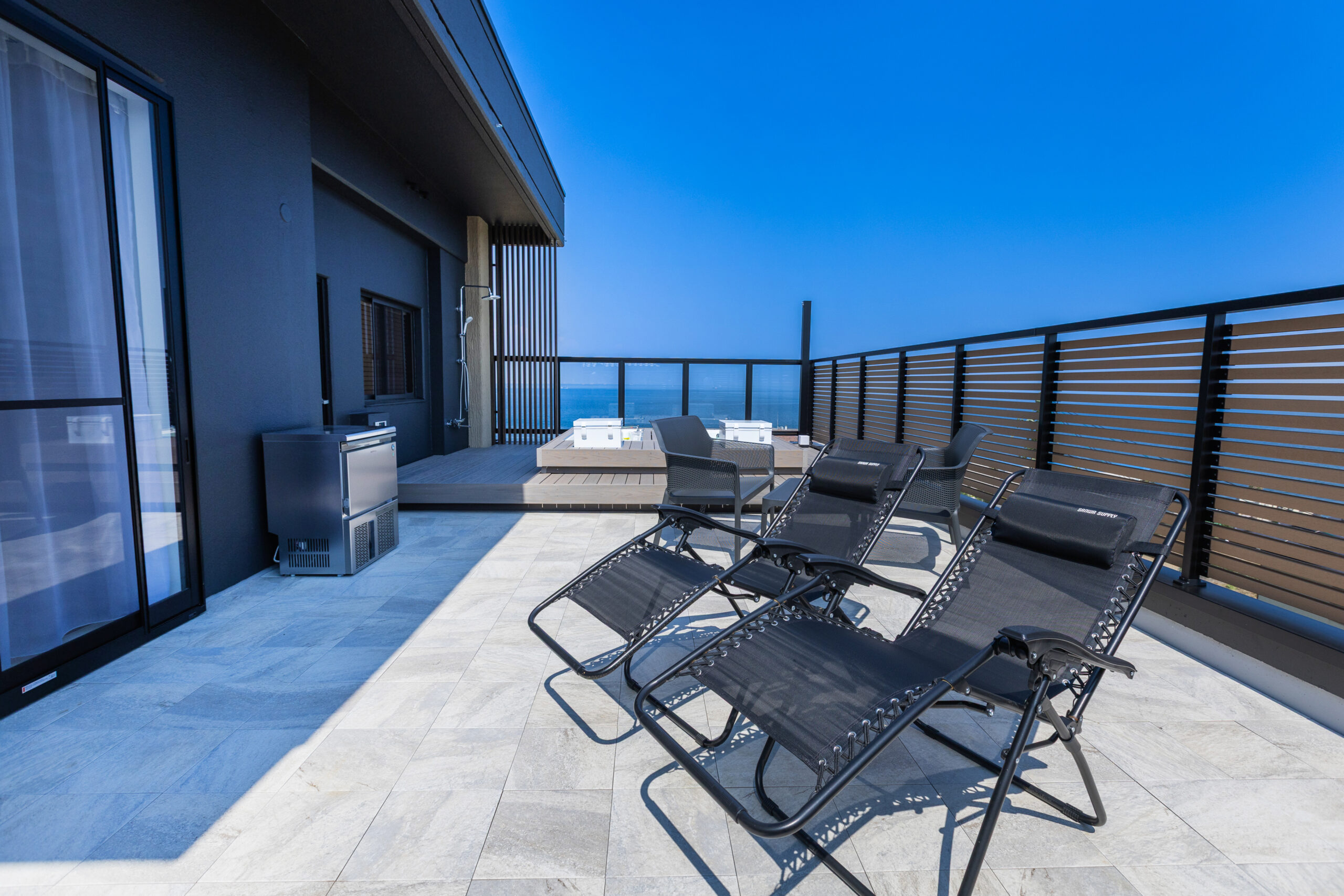 青い海と広がる空を一望できるプライベート空間。